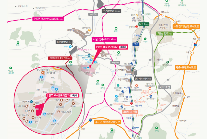뿐만 아니라 '경기북부 1.5순환 고속화도로', 양주 테크노밸리, 은남 산업단지 등 지역 개발 프로젝트도 함께 진행되어 미래가치 상승이 확실시됩니다.