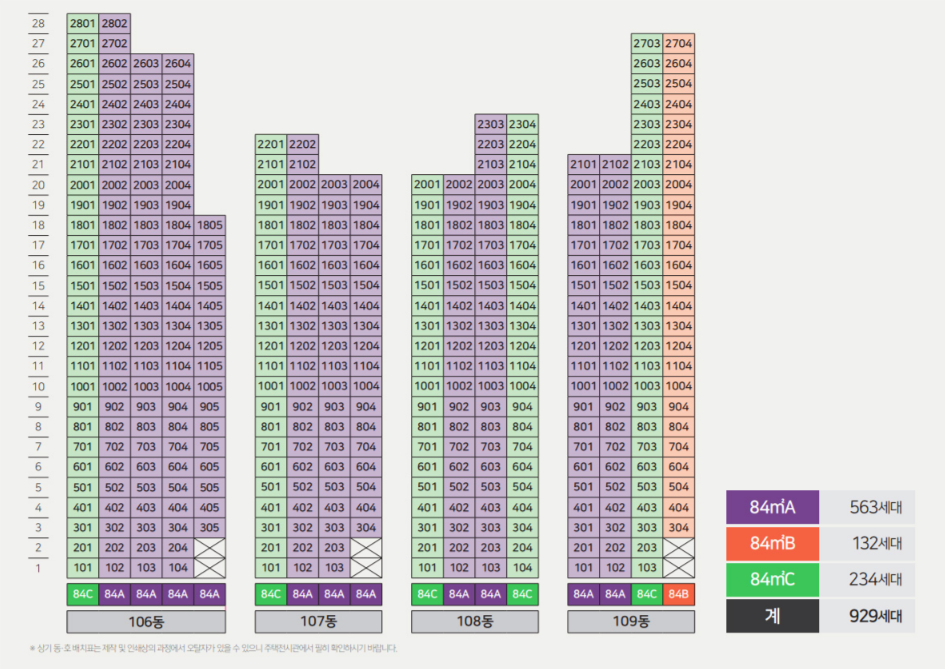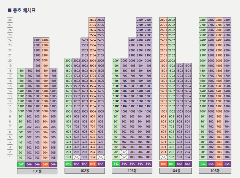 • 84A : 4BAY 판상형, 3룸+2욕실+대형 드레스룸 / 총 563세대