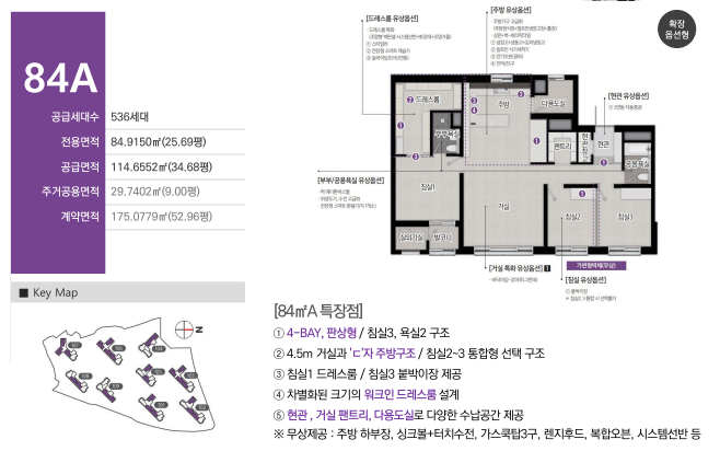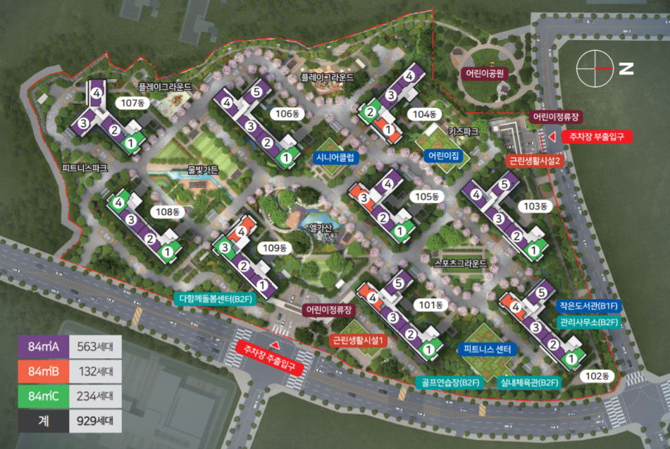 - 84A : 4BAY 판상형, 3룸+2욕실+대형 드레스룸 / 총 563세대