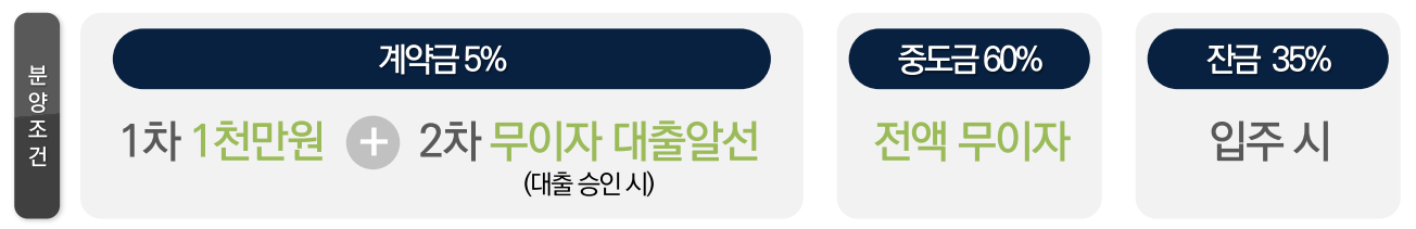 ✔ 계약금 5% (1차 1,000만 원만 선납) ✔ 중도금 60% 전액 무이자 ✔ 잔금 35%는 입주 시 납부