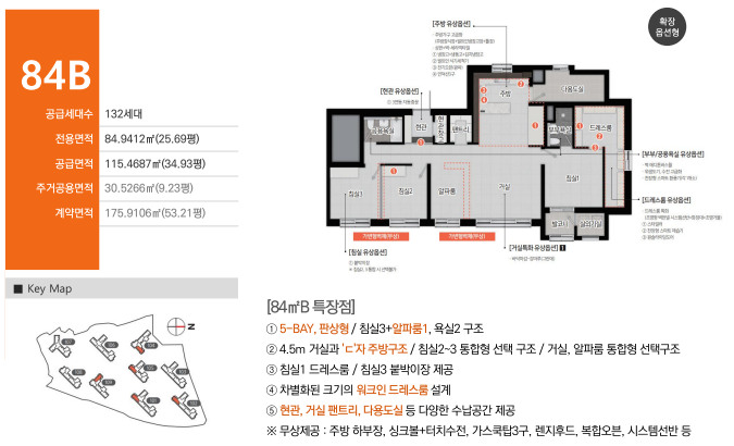 - 84B : 5BAY 판상형, 알파룸 포함 구조 / 총 132세대