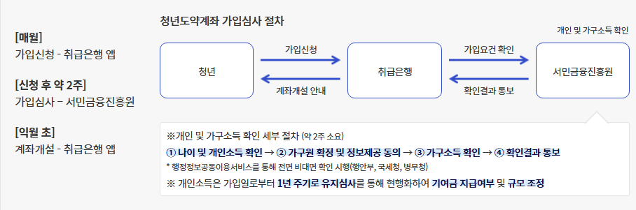 - 신청 가능 은행: 국민(KB 청년도약계좌), 신한(신한 청년도약계좌), 우리(우리 청년도약계좌), 하나(하나 청년도약계좌), 농협(NH 청년도약계좌), 기업(IBK 청년도약계좌), 부산(부산은행 청년도약계좌), 경남(경남은행 청년도약계좌), 광주(KJB 청년도약계좌), 전북(JB 청년도약계좌), 대구은행(IM 청년도약계좌) 등