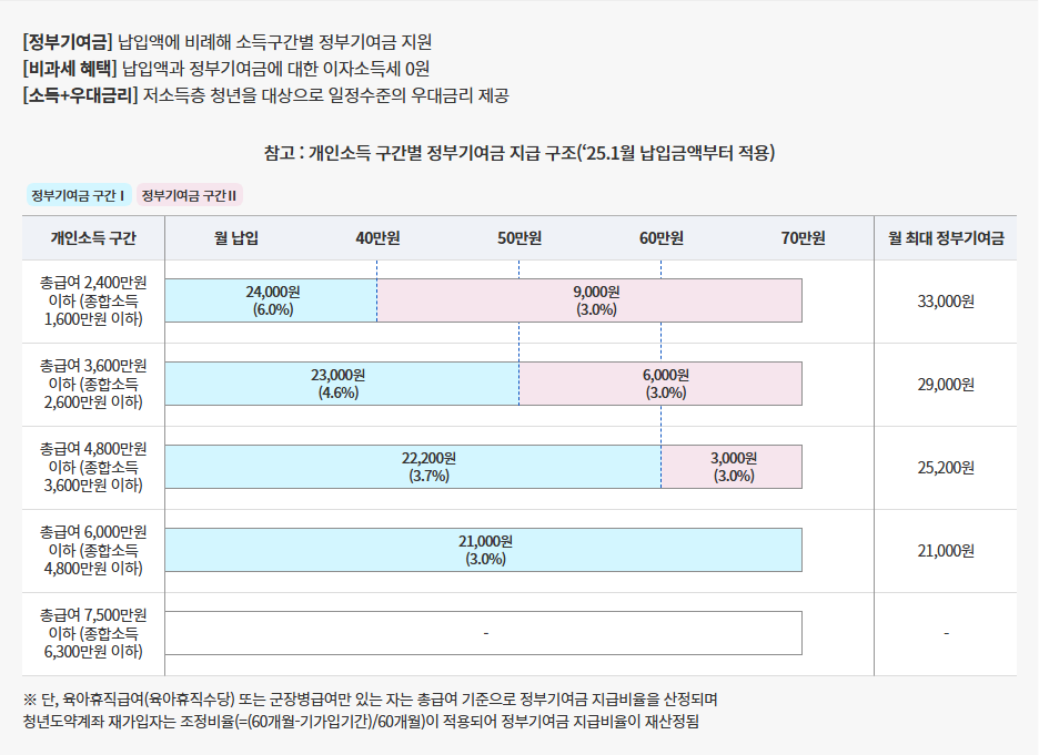 💡 개인소득에 따라 최대 월 40,000원까지 정부기여금 지급!