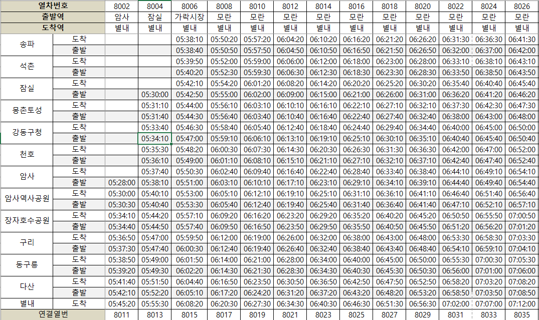 8호선 연장(별내선)이 2024년 8월 10일 구리역 기준 05:30분 첫 차를 운행하며 개통으로